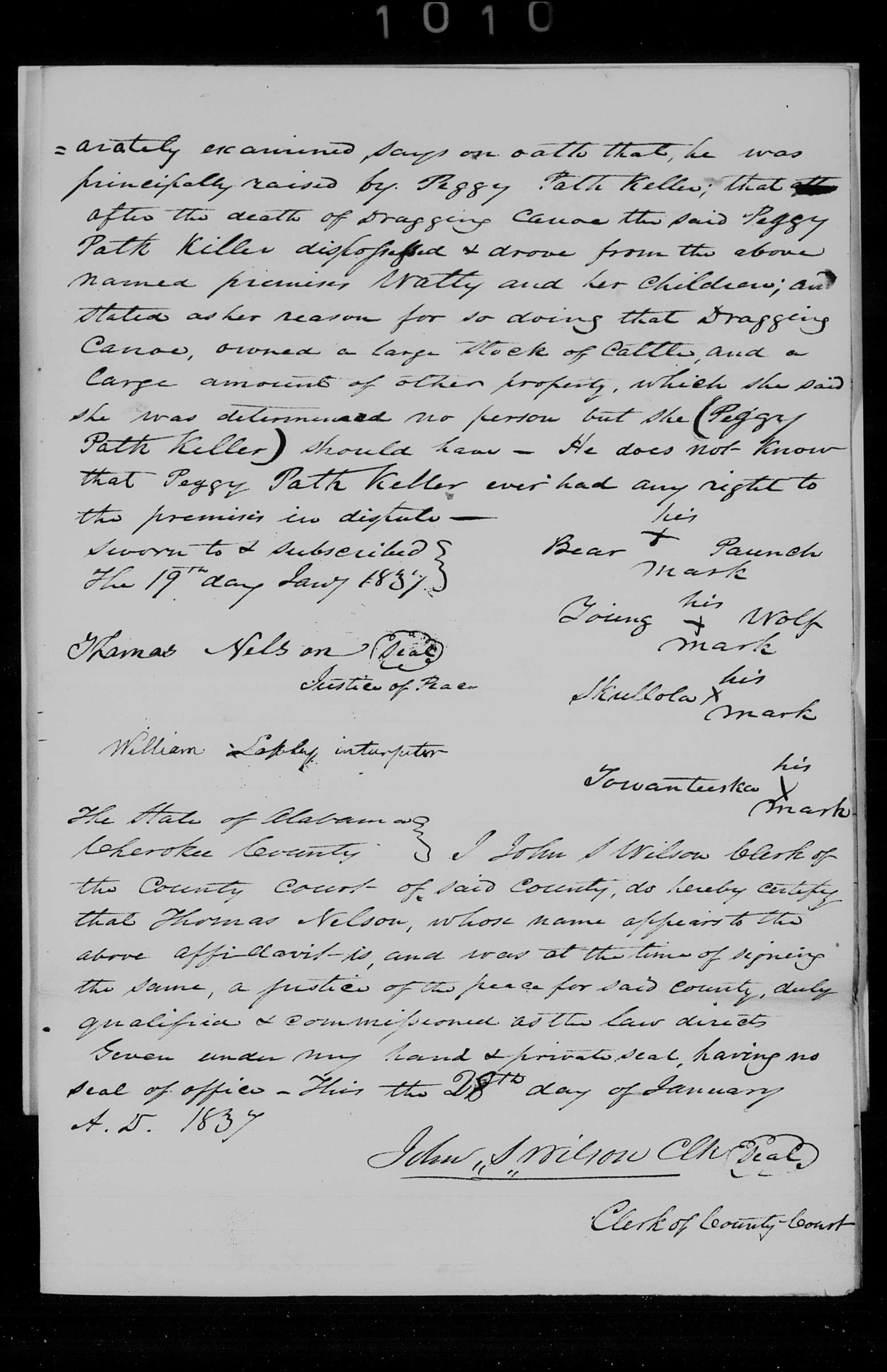 I will leave this for you to ponder over. Review the documents again. This is the view of Dragging Canoe’s family. The maternal side of the family is the dominant side for the Cherokee people. I will post next time Tarply W. Nalls’s response for attempting to purchase part of the improvement. I will show Nelly’s side of this dispute. I will introduce David Gage’s involvement with William Lasley. He is the son of James Lasley and Elizabeth Wickett Lasley. Notice that he is the interpreter on the documents. His father is white and his mother is a full-blood Cherokee.