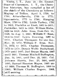 “Her Indian name was Tah-nee. She was full blood, daughter of a considerable chief and warrior . . . She migrated to this country in 1819, then wife of Girth, son of John Jolly, head chief of this division of the Cherokees.”