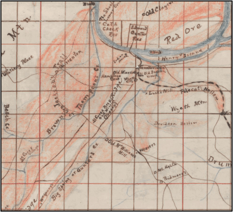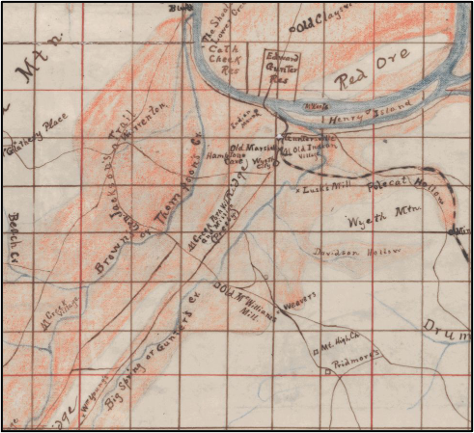 Notice Brown or Thompson Creek in the above map of Marshall County, Alabama. It is in the vicinity where Chief Little Turkey’s family lived before moving West. Brown is Rev. John Brown who was the Mission Teacher/Preacher for Creek Path also marked on the map. Modern-day this is under Lake Guntersville.
