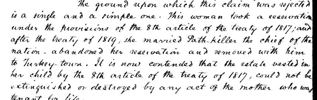 There was no response from President James Madison about this matter. Did he know? Was it passed up the chain of command? There is no response from the Government of Mississippi. Governor George Poindexter’s term ended in December 1821. Governor Walter Leak’s term started in January 1822. Agent Meigs died in the year of 1823. There does not seem to be any follow-up on the requests of Chief Pathkiller.