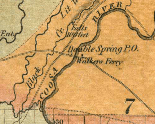 On LaTourette’s 1837 Map, the Ferry at the Double Springs Post Office is identified as Walkers Ferry. Double Springs is the present location of the City of Gadsden Alabama. The Jacksonville Road that crossed the Coosa River at Walker’s Ferry would today be U.S. Highway 431. There were no Walkers among the Original Patentees in Section 3.86 9Claim #958 in the Records of the 4th Board made by the Heirs of John Riley vs. US was for loss of a ferry from 1807 to 1819.87 10This likely refers to a different ferry.